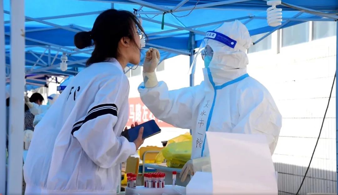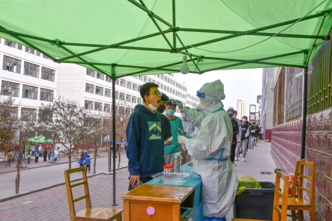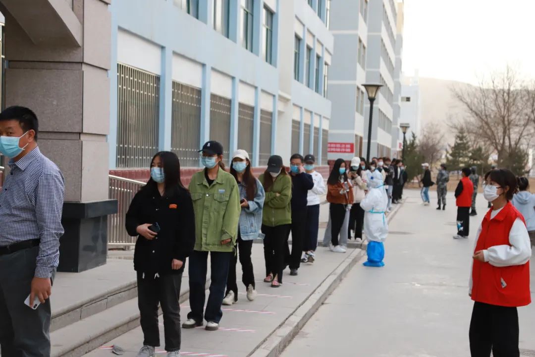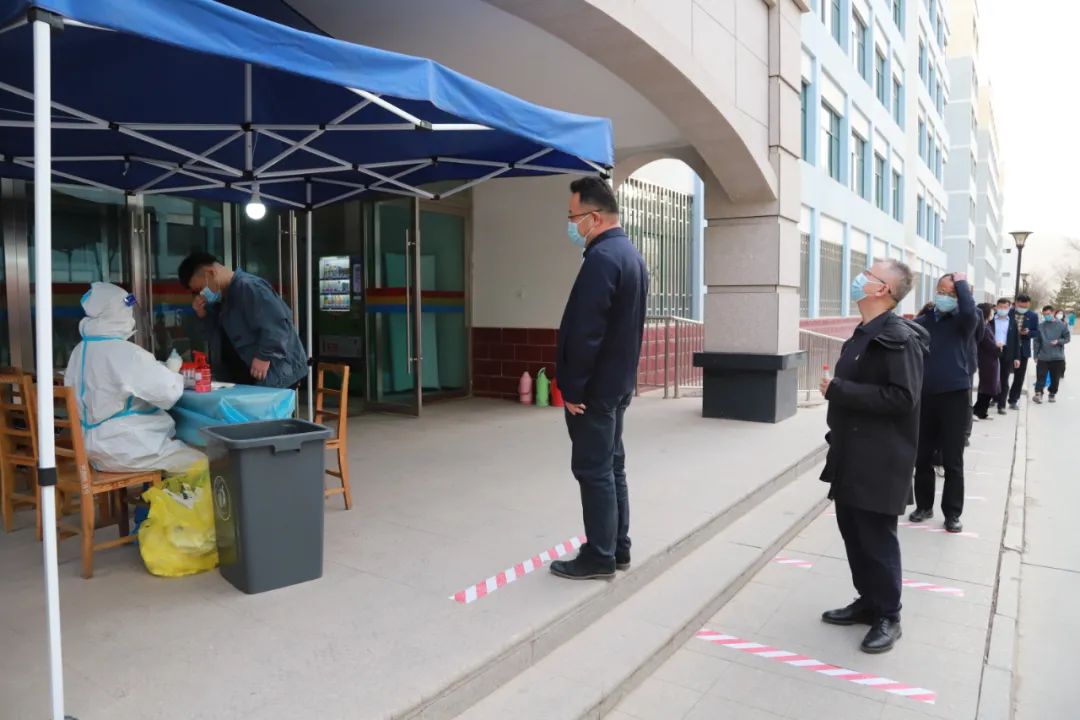 和医护人员、志愿者的不懈努力下3月15日下午学校 高效有序 组织开展了第一次全员核酸检测本着 分批分次、应检尽检 的原则分别在和平、段家滩、东岗三校区设立了核酸检测点