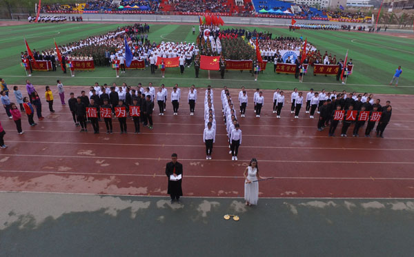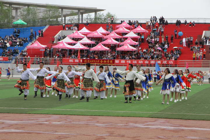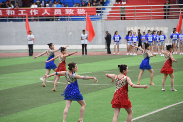 开幕式文艺演出在动感十足的拉丁舞表演中开始,同学们以优美的舞姿展现出青春洋溢的色彩和韵律;精彩纷呈的健美操表演体现出我校学子朝气蓬勃的精神状态,并将运动会的气氛推向高潮;太极拳表演迎来了大家的阵阵欢呼声和掌声,充分展现出了中华民族传统的武术魅力;压轴的锅庄舞表演更加体现了我校民族融合的团结氛围。同学们激情豪迈、英姿焕发的身影是运动会中最为动人的画面。