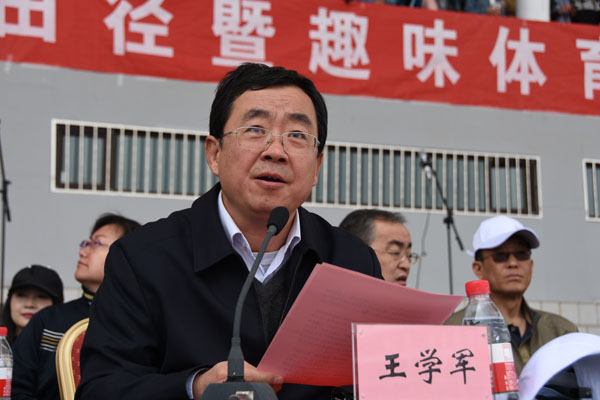 运动会组委会主任、副校长王学军在开幕式上致词。他代表校党委、校行政以及大会组委会,对本届运动会的顺利召开表示热烈的祝贺。向为本届运动会付出辛勤劳动的全体教职员工和同学们,表示衷心的感谢。向参加本届运动会的全体裁判员、运动员和教练员,致以崇高的敬意。他指出,刚刚过去的一年,是推动落实学校“12349”总体战略思路和发展目标的重要一年,各项工作取得了新进展。