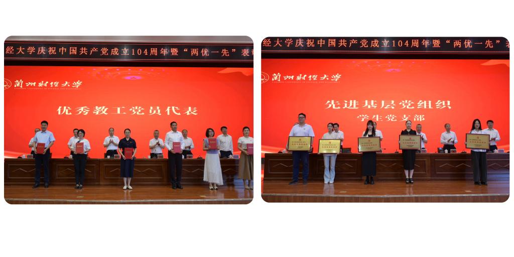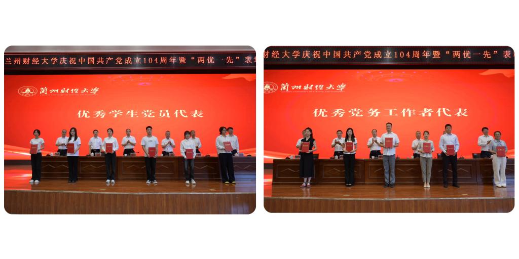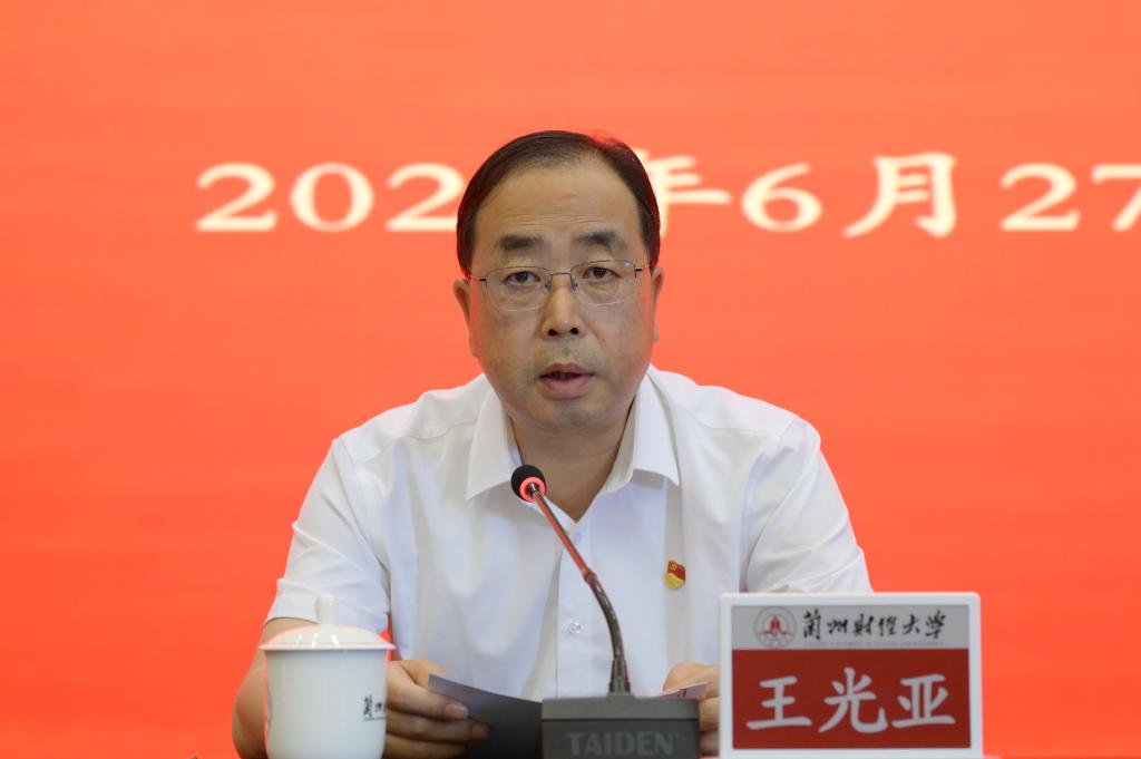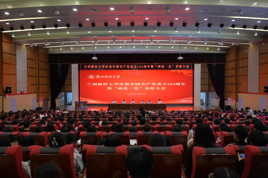 6月27日上午,兰州财经大学庆祝中国共产党成立104周年暨“两优一先”表彰大会在和平校区兴隆讲堂举行。校党委书记王光亚出席会议并讲话。校党委副书记滕宗骞主持会议。校领导李万红、苏孜、景宗刚、管新帅出席会议。