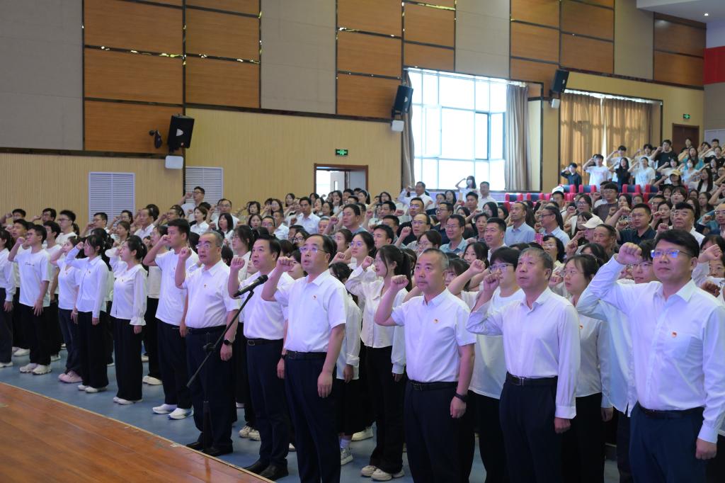会议组织2025年新发展党员代表进行入党宣誓,全体党员面向党旗,共同重温入党誓词,进一步坚守初心使命,坚定为共产主义事业奋斗终身的信念和决心。