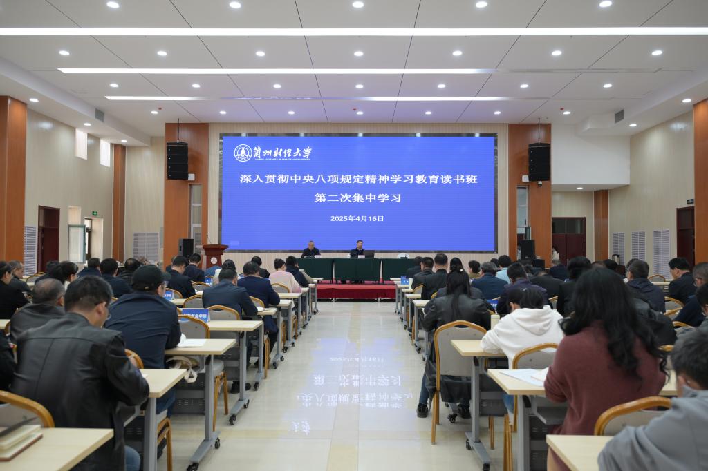 4月16日下午,学校深入贯彻中央八项规定精神学习教育读书班第二次集中学习在和平校区润德楼博雅堂举行。中共甘肃省委党校党建研究所所长刘务勇教授应邀作专题辅导报告。校党委副书记滕宗骞主持会议并讲话。